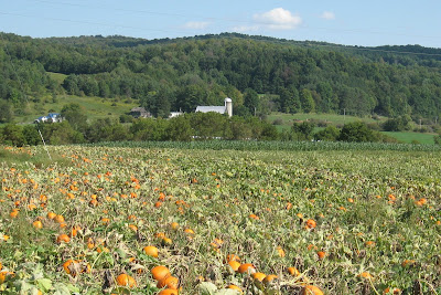 Friday at last. School is going well and the newly renovated building is just beautiful. Lots of ooohhs and aaahhhs. Even the ceilings are fancy, with multi-level swirls and pretty lighting. The lovely courtyard gardens are gone with a layer of slick bricks covering the ground. Trees may be changing color, pumpkins are ready to be picked, but there is a heat wave going on in Central New York. High 80's every day this week. Prime hay weather. Mr. Spooner finally came back and baled the last of the first cut. He was on another field that was offered to him, making 1,000 bales. I arrived home from work to find two wagons to be unloaded. There is a bounty of second cut waiting to be mowed, but Mr. Spooner is exhausted and never wants to see another bale of hay, he tells me, and Hurricane Hanna is on her way up the coast. After a summer of rain we were blessed with this week of perfect weather...for people with the equipment and the time to take advantage of it. I'm grateful I have what I do in the barn, and optimistic that when I run out there are farmers who were able to get a motherlode of hay in their barns and will sell some to me when I run out.