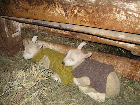 Cold and windy with some icy/rainy snowing. The puppies are prancing and playing on the floor. I'm loving this cute stage and thankful I can be home with them for a few days. AJ called from Atlanta saying he's about to board a flight to Newark. He'll pick up a rental and drive up from there. I hope it's a sturdy vehicle but I doubt it. AJ is a good driver but he also likes to get where he's going. We're going out to dinner tonight with Beastie Boy. Very much looking forward to it. I'll try to get some things done in the Maggie Cave today, but for now I have a lovely black Bluefaced Leicester fleece on the floor, shielding it from the puppies as I pick at it. There's another cup of foamy cinnamon cappucino in the microwave waiting for me. I have five big blocks of Patchouli soap to cut up and set out to cure. It's garbage day so I'll have to suit up and get it down the lane to the dumpster. The bottles are ready for Joseph and Gabriel. My four lambs are growing like crazy and eating hay. I'll have to pull their sweaters off them soon. I'm sure Sidewinder, my angora goat with a crooked spine is pregnant. I'll catch her and put her in a pen so I can keep a close eye on her. With this loooong barn that has no light at the end an animal can give birth and I wouldn't know right away. With temps diving tonight that could be problematic. I make sure I walk the entire length of the barn each day. Thank you Lord for my big barn, but it does present challenges.